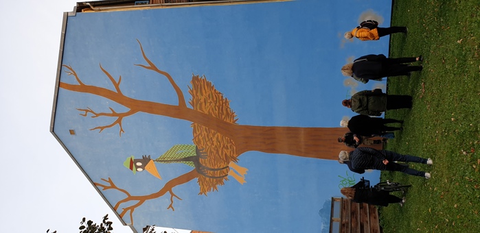 Nå skapes det kunsthistorie i bydelen vår. Viktor Gjengaard tok gruppen med rundt og fortalte om kunstnerne, valg av motiver, hvordan «får de det til» og ikke minst hvordan det har påvirket miljøet i området. Det startet omtrent for 10 år siden og etter hvert ble aktiviteten en del av Tøyen-løftet hvor man inviterte inn gatekunstnere fra hele verden.