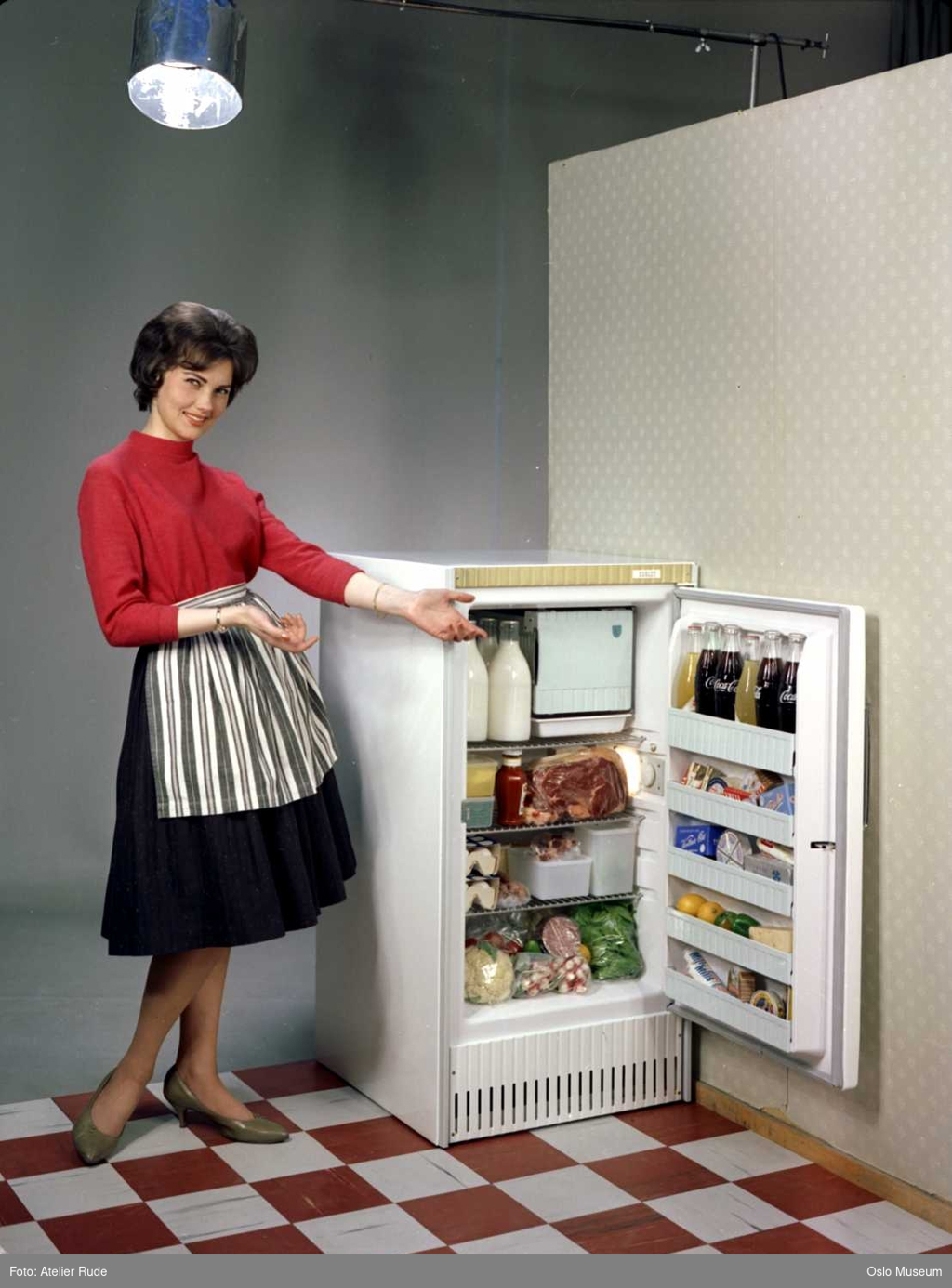 Foto: Slik presenterte man et lekkert Evalet kjøleskap i 1960. Foto: Atelie Rude. Eier: Oslo Museum.